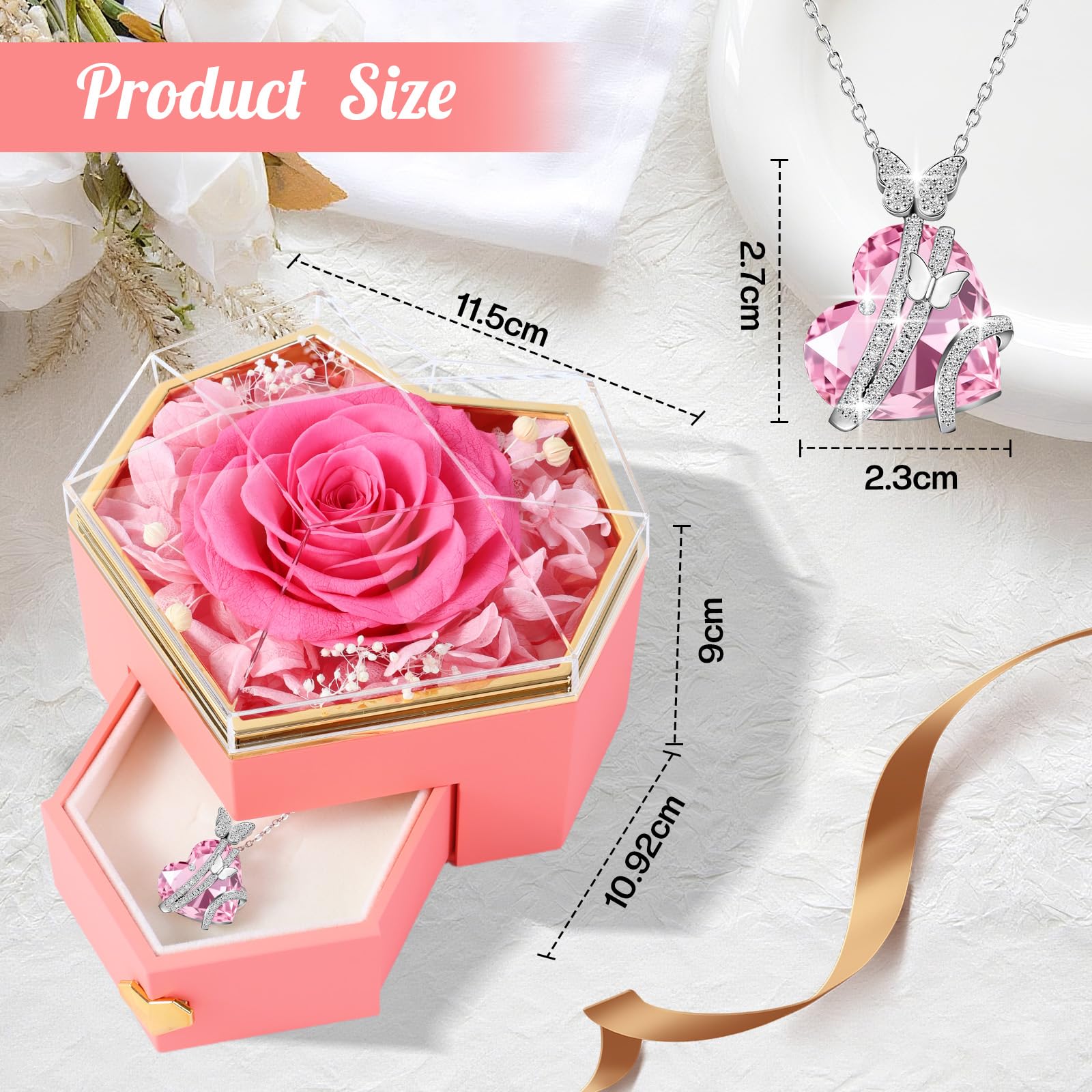 Ewige Rose mit Herz-Schmuck – Luxuriöses Geschenkset für besondere Momente